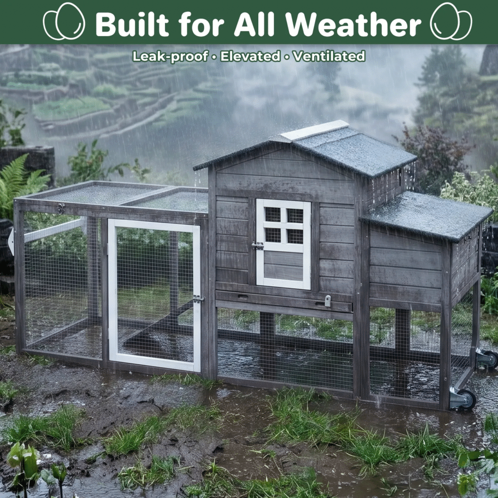 Outdoor housing needs to handle real conditions, not just look attractive in a product listing. Rain, direct sunlight, cold mornings, humidity, and seasonal temperature swings all test the quality of a coop. Budget models often struggle in exactly these conditions.